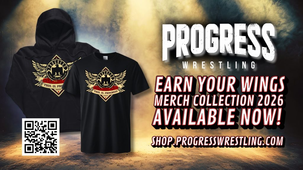 Get kitted out in time for the first PROGRESS Wrestling show of 2026 this weekend by purchasing our brand-new ‘EARN YOUR WINGS’ range! Stylish hoodies and t-shirts are available to be purchased. Featuring the iconic Regal Eagle in black and gold, the hoodies and t-shirt represent strength, identity, and forward momentum – in the ring […]