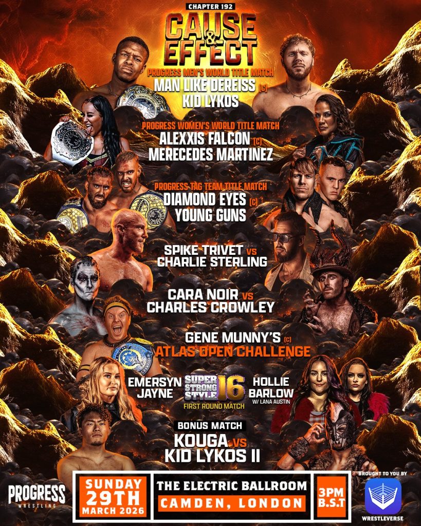This Sunday, the Electric Ballroom in Camden becomes the beating heart of British wrestling as PROGRESS Wrestling returns to the famous venue for Chapter 192: Cause and Effect, brought to you by Wrestleverse! With multiple titles on the line and long‑running stories coming to a head, you can be part of the crowd for a pulsating afternoon. Read 10 reasons to purchase your tickets for Chapter 192: Cause and Effect. 1. A World Title Grudge Match With Real History At the top of the card, PROGRESS Men’s World Champion Man Like Dereiss defends the world title against Kid Lykos in a match built on revenge and unfinished business. After Lykos controversially pinned Dereiss in a tag at Chapter 190, this defence has real bite. Dereiss wants to prove he is still PROGRESS’ top man, and Lykos is hungry to reclaim the world championship he once held. Dereiss has held the PROGRESS Men’s World Championship since Chapter 183: 100 VOLTS, making this defence one of the biggest tests of his reign. Lykos is a former world champion with years of top‑level experience, so the stakes for the men at the top of the card could not be higher for chapter 192. […]