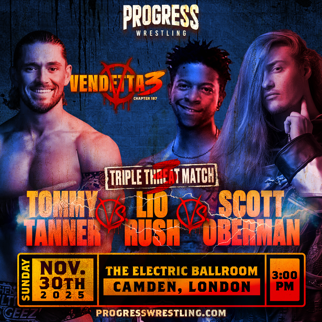 Speed, chaos, and risk-taking are guaranteed. AEW’s Lio Rush brings world‑class explosiveness, Tommy Tanner looks to prove he belongs at the elite level with his PROGRESS debut, and Scott Oberman is ready to steal any opportunity in the Ballroom for the first time fresh after his victory over Drew Parker. One fall to a finish means no one can afford a single mistake.